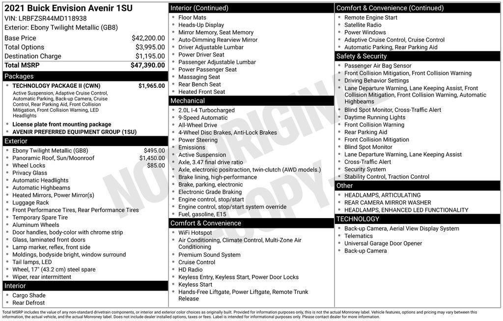 Experience the pinnacle of luxury and performance in the 2021 Buick Envision Avenir. This exceptional SUV is a true masterpiece, blending sophisticated style, cutting-edge technology, and uncompromising capability. Boasting an impressive array of fe...
