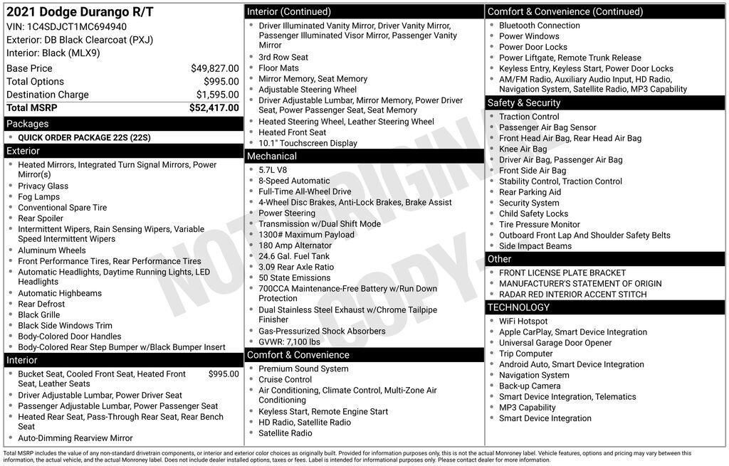 2021 Dodge Durango R/T DB Black Crystal Clearcoat CARFAX One-Owner. Recent Arrival! Odometer is 9656 miles below market average! Outstanding features on this Durango include.. DAVE ARBOGAST IS ONE OF THE TOP 100 FRANCHISE USED CAR DEALERS IN THE...