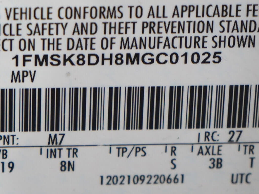VIN 1FMSK8DH8MGC01025 may have been