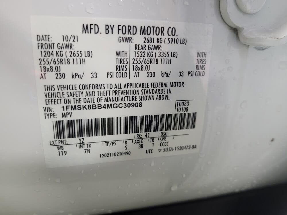 VIN 1FMSK8BB4MGC30908 may have been