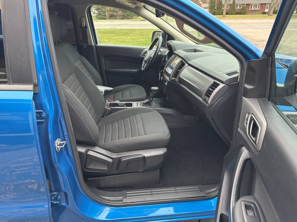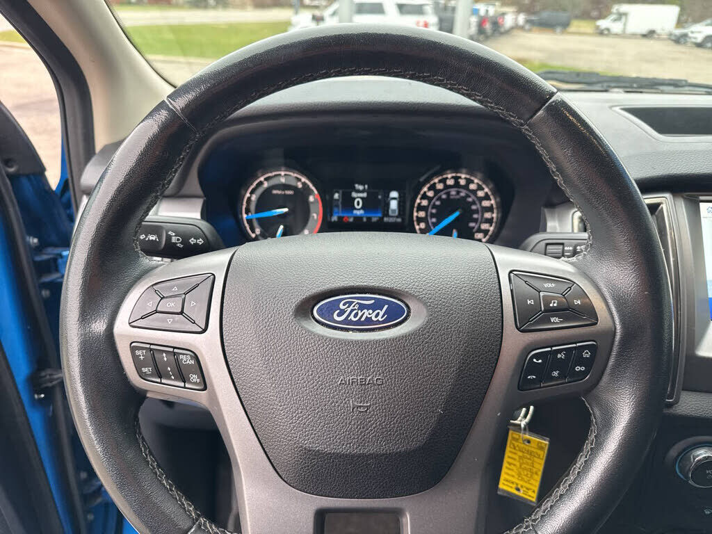 Blue 2021 Ford Ranger XLT RWD 10-Speed Automatic EcoBoost 2.3L I4 GTDi DOHC Turbocharged VCT CarFax Great Reliability, 110V AC Power Outlet, Adaptive Cruise Control, Auto-Dimming Rear-View Mirror, Electronic-Locking Rear Differential, Equipment Group...