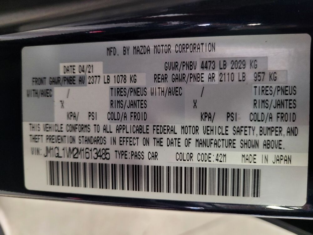 Vehicle Records & Info. Your report VIN JM1GL1VM2M1613485 includes: