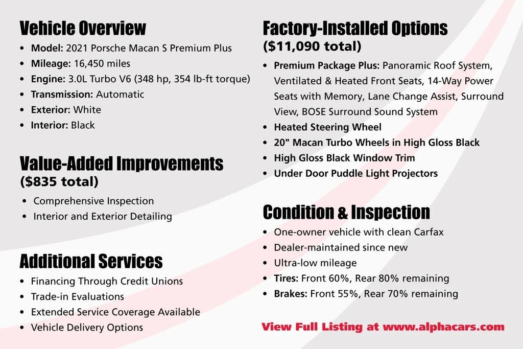 To be more confident in your used car purchase and get more information about the auto, including its accident history, insurance records, odometer readings history and other important details, we recommend you get a vehicle history report for the car prior to buying it.