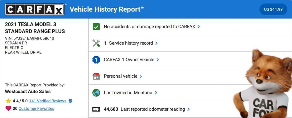 To be more confident in your used car purchase and get more information about the auto, including its accident history, insurance records, odometer readings history and other important details, we recommend you get a vehicle history report for the car prior to buying it.