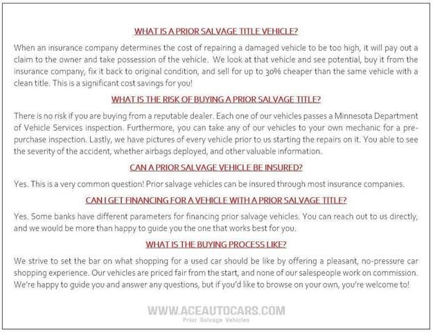 To be more confident in your used car purchase and get more information about the auto, including its accident history, insurance records, odometer readings history and other important details, we recommend you get a vehicle history report for the car prior to buying it.