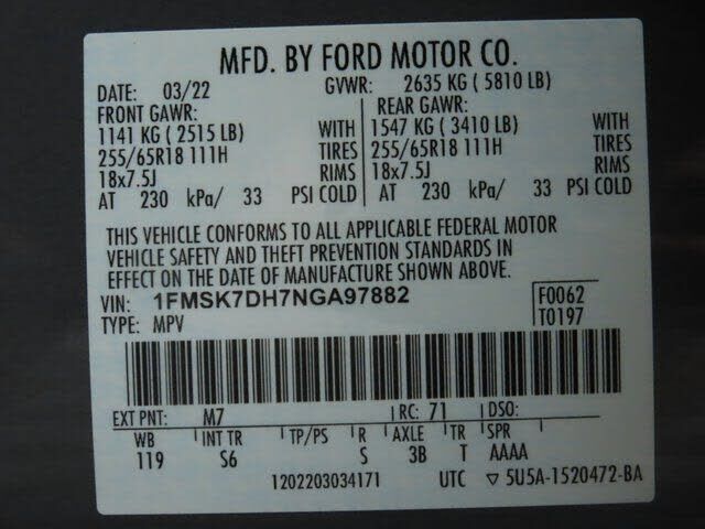 Equipment Group 202A,3.58 Non-Limited-Slip Rear Axle Ratio,Wheels: 18" 5-Spoke Silver-Painted Aluminum,Unique Cloth Captain's Chairs,ActiveX Captain's Chairs,2nd Row 35/30/35 Bench w/E-Z Entry & Armrest,AM/FM Stereo,Auto Start-Stop Removal,Rear Auxil...