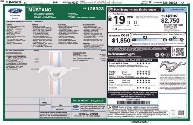 Recent Arrival! Race Red 2022 Ford Mustang GT Premium RWD 10-Speed Automatic 5.0L V8 Ti-VCT Equipment Group 400A, GT Performance Package (Engine Spun Aluminum Instrument Panel, Gauge Pack (Oil Pressure & Vacuum), Heavy-Duty Front Springs, Larger Bra...