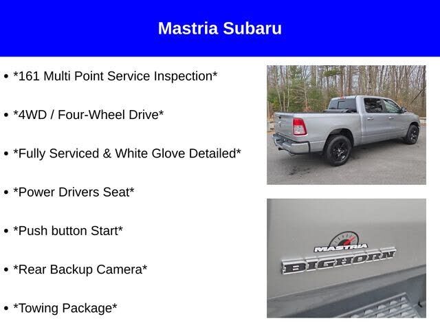 Recent Arrival! Billet Silver Metallic Clearcoat 2022 Ram 1500 Big Horn/Lone Star HEMI 5.7L V8 Multi Displacement VVT 8-Speed Automatic 4WD *161 Multi Point Service Inspection*, *Fully Serviced & White Glove Detailed*. Welcome to Mastria Subaru. W...