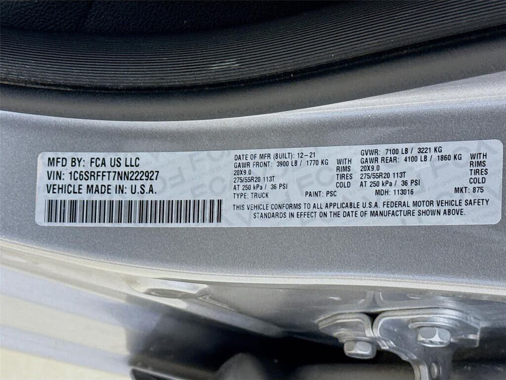 VIN 1C6SRFFT7NN222927 may have been