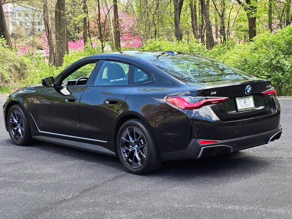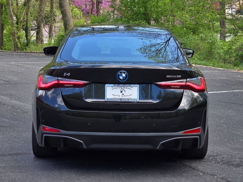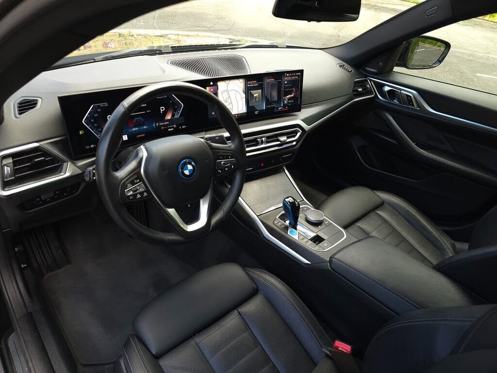 The 2023 BMW i4 eDrive35 Gran Coupe in Black Sapphire Metallic is a striking fusion of modern design and advanced technology, epitomizing sophistication with its sleek, aerodynamic silhouette and distinctive kidney grille. The bold black exterior exu...