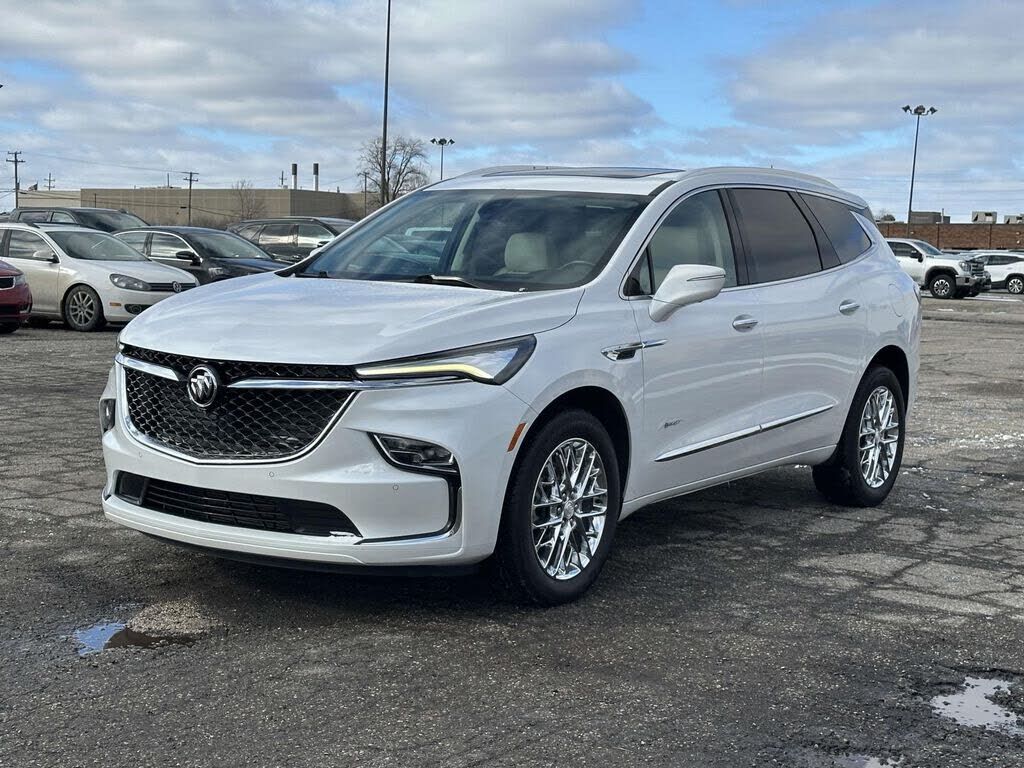 White Frost Tricoat 2023 Buick Enclave Avenir AWD 9-Speed Automatic 3.6L V6 SIDI VVT AWD. Recent Arrival!Preferred Equipment Group 1SP,3.49 Axle Ratio,Wheels: 20" w/Pearl Nickel Finish,Wheels: 20" Transit,Wheels: 20" Chrome (LPO),7-Passenger Seatin...