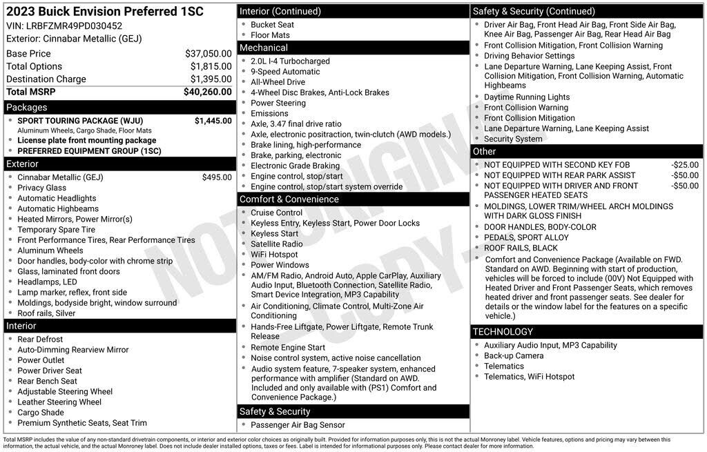 2023 Buick Envision Preferred Cinnabar Metallic AWD 2.0L Turbocharged 9-Speed Automatic 22/29 City/Highway MPG Visit www.johnsonautoplaza.com for more information. Feel free to browse our inventory online, request more information about vehicles,...