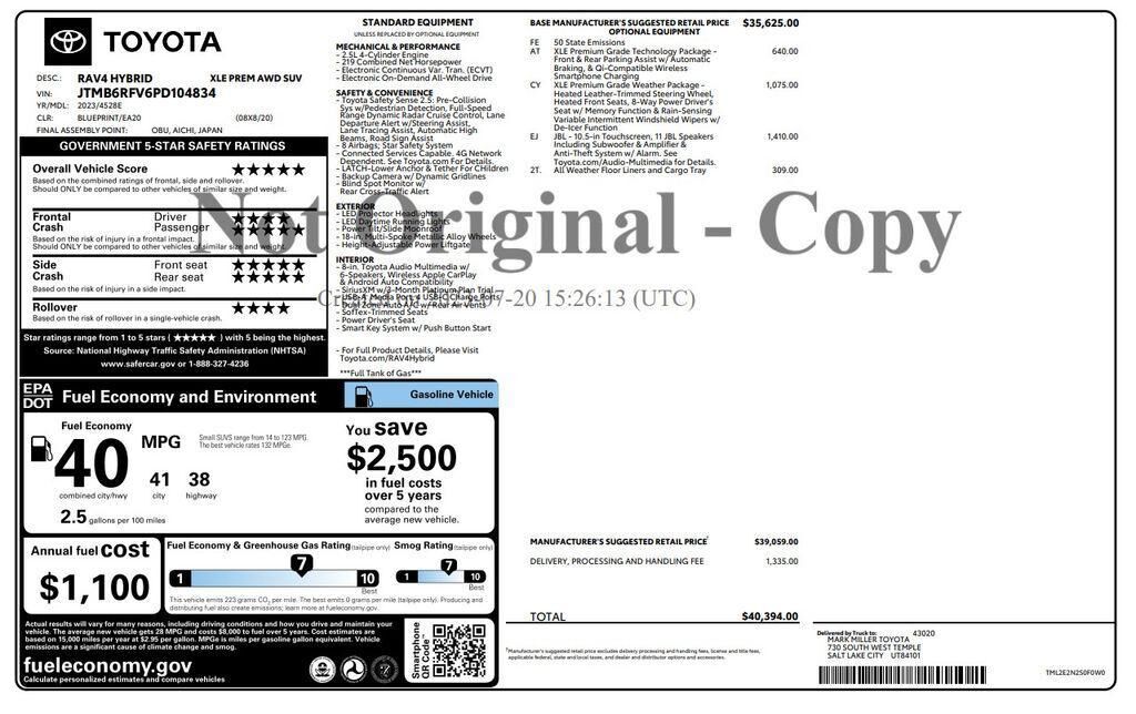 Wheels: 20" Aluminum w/Dark Finish