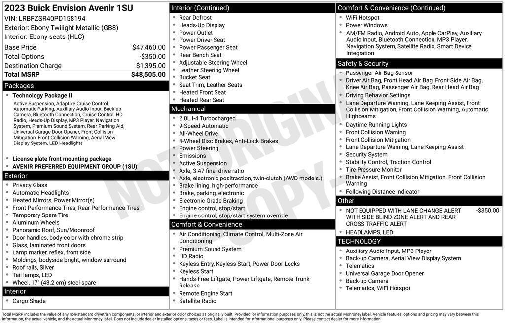 Not Equipped with Lane Change Alert with Side Blind Zone Alert and Rear Cross Traffic Alert