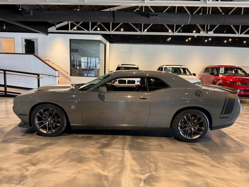 This 2023 Dodge Challenger 2dr 6SpeedManual/PlusPkg/MoonRoof/Htd&CldSeats/HtdSteerWheel/NAV features a 6.4L 8 CYLINDER 8cyl Gasoline engine. It is equipped with a 6 Speed Manual transmission. The vehicle is Destroyer Gray Clearcoat with a Ruby Red/Bl...
