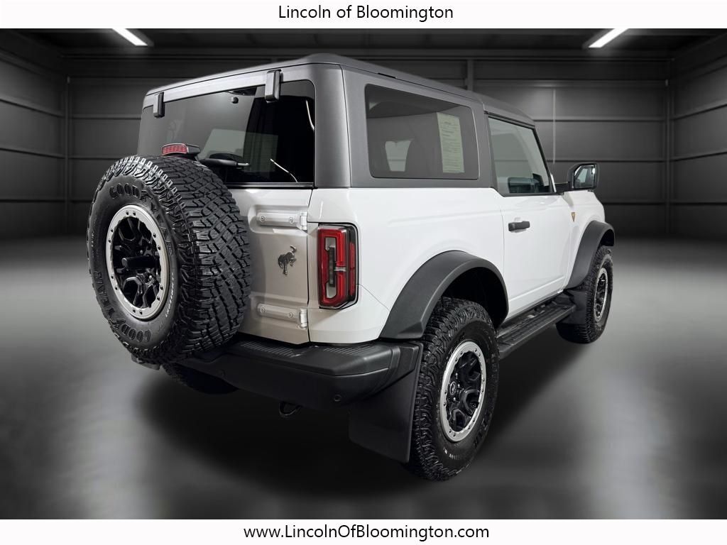 Oxford White 2023 Ford Bronco Badlands 2.7L EcoBoost V6 4WD Pricing includes $1000 finance bonus cash. Must finance through one of 30 qualified sources through Lincoln of Bloomington. See dealer for details. Buyer to confirm equipment prior to purc...