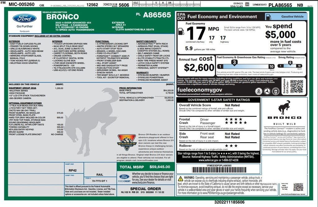 Equipment Group 353A High Package,Wheels: 17" Black High Gloss-Painted Aluminum,Heated Leather-Trimmed/Vinyl Bucket Seats,4.7 Axle Ratio,Towing Capability,Carbonized Gray Molded-In-Color Hard Top,AM/FM Stereo,Front License Plate Bracket,Brush Guard,F...