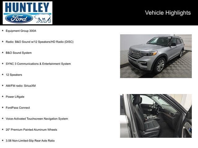 2023 Ford Explorer 4WD, 12 Speakers, 20" Premium Painted Aluminum Wheels, 3.58 Non-Limited-Slip Rear Axle Ratio, AM/FM radio: SiriusXM, B&O Sound System, Equipment Group 300A, FordPass Connect, Power Liftgate, Radio: B&O Sound w/12 Speakers/HD Radio...