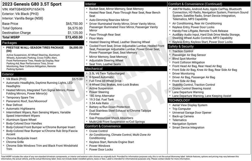 Recent Arrival! 2023 Genesis G80 3.5T Vik Black FIND OUT WHY WE HAVE A 4.5 GOOGLE RATING AND WHY WE HAVE OVER 10,000 REVIEWS ONLINE!!! NO HOOKS NO GIMMICKS EVERYONE QUALIFIES FOR THIS PRICE. Buyer is responsible for Tax, Title, License and Doc Fee...