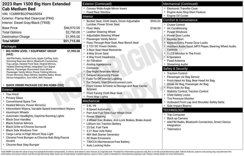 2023 Ram 1500 Big Horn/Lone Star Flame Red Clearcoat 4WD 8-Speed Automatic Clean CARFAX. Recent Arrival!Quick Order Package 23Z Big Horn,3.21 Rear Axle Ratio,Wheels: 18" x 8" Cast-Aluminum Painted,Cloth Bench Seat,Big Horn Level 1 Equipment Group,...
