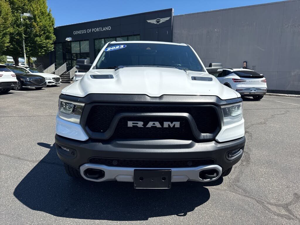 2023 Ram 1500 Rebel Bright White Clearcoat HEMI 5.7L V8 Multi Displacement VVT eTorque 115V Auxiliary Rear Power Outlet, 12" Touchscreen Display, 2-Door Passive Entry, Front Door Locks, 2nd Row In Floor Storage Bins, 3.92 Rear Axle Ratio, 4 Way Front...