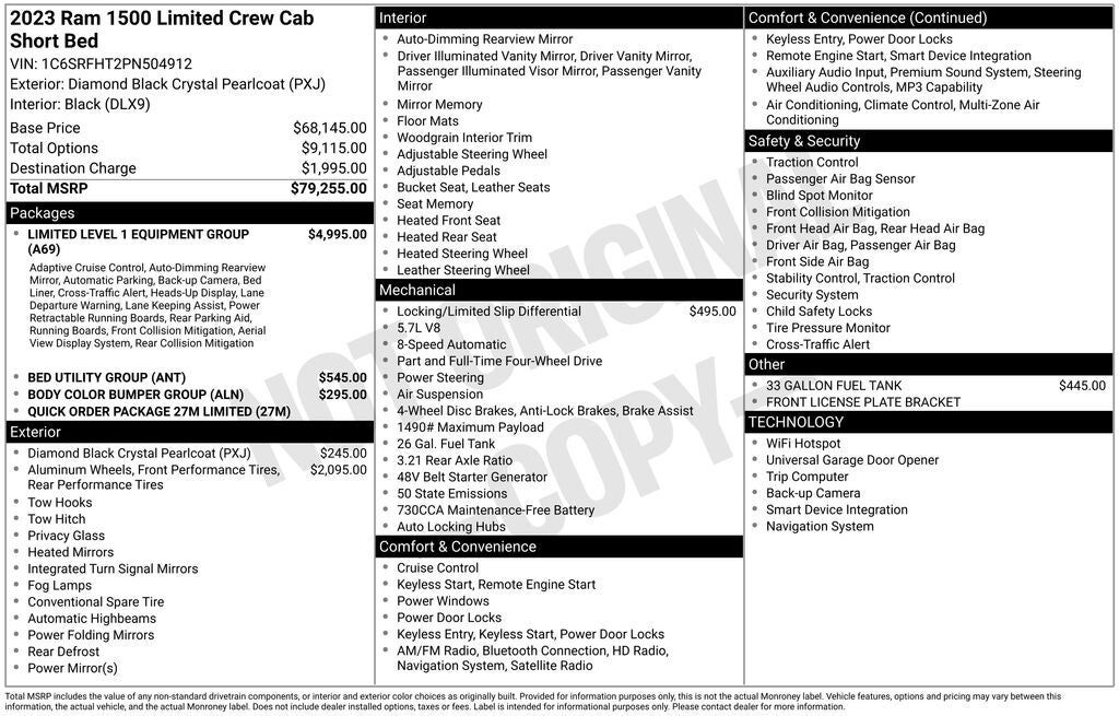 Interior Trim -inc: Deluxe Sound Insulation Genuine Wood/Metal-Look Instrument Panel Insert Genuine Wood/Metal-Look Door Panel Insert Leather/Genuine Wood Console Insert Chrome/Metal-Look Interior Accents and Leather Upholstered Dashboard