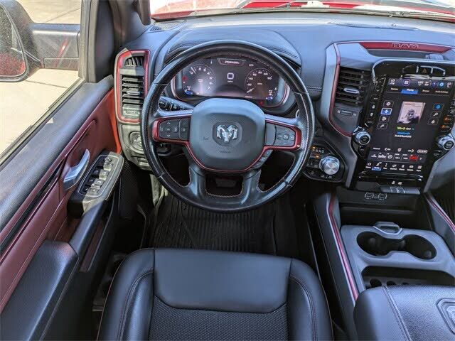 Recent Arrival! 2023 Ram 1500 Rebel 4WD 8-Speed Automatic Flame Red Clearcoat HEMI 5.7L V8 Multi Displacement VVT eTorque 12" Touchscreen Display, 2nd Row In Floor Storage Bins, 3.92 Rear Axle Ratio, 4 Way Front Headrests, 4-Wheel Disc Brakes, 48V Be...