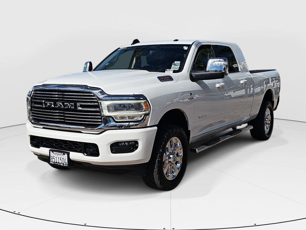2023 Ram 2500 Laramie LARAMIE Bright White Clearcoat Clean CARFAX. CARFAX One-Owner. 2500 Laramie LARAMIE, 4D Mega Cab, Cummins 6.7L I6 Turbodiesel, 6-Speed Automatic, 4WD, Bright White Clearcoat, Black w/Leather Trim 40/20/40 Bench Seat or Leather...