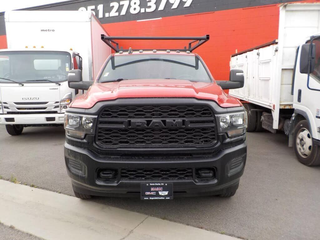 The 2023 Ram 3500 Chassis Cab Tradesman offers a robust and reliable platform for heavy-duty tasks, pairing powerful performance with practicality. Its bold Flame Red Clearcoat exterior makes a striking impression, accentuating the truck's muscular s...