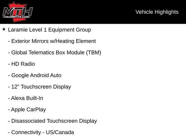 Discover the unparalleled power and capability of the 2023 Ram 3500 Laramie. This exceptional truck is engineered to conquer any terrain, with a Cummins 6.7L I6 Turbodiesel engine that delivers exceptional performance and efficiency. Equipped with a...