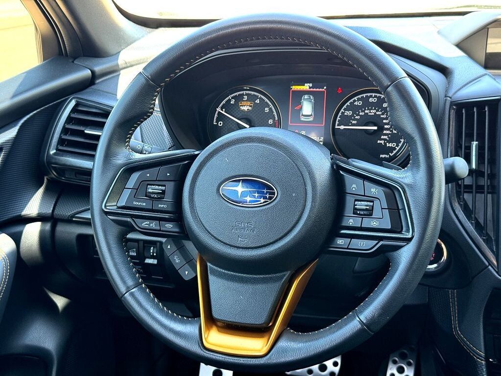 Textured StarTex Upholstery -inc: silver and copper stitching and embossed Subaru Wilderness logo on head restraints