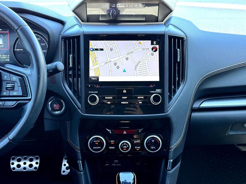 Radio: Subaru Starlink 8.0" Multimedia Plus System -inc: AM/FM stereo HD Radio w/single-disc CD player MP3/WMA/CRR/RW file capability multi-touch gesture high resolution display screen voice activated controls Bluetooth® audio streaming hands-free phone connectivity and hands-free SMS text messaging connectivity (refer to subaru.com for cell phone compatibility) Near Field Communication (NFC) iPod control capability SiriusXM All Access radio and Travel Link (4 months free trial/subscription required after) smartphone integration for AHA Android Auto Apple CarPlay Pandora and Starlink cloud applications (refer to subaru.com for app availability) USB and Over The Air (OTA) audio system update steering wheel controls for audio and Bluetooth® 6 speakers 3.5mm auxiliary input jack and dual USB A input/charge ports