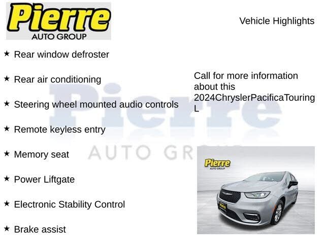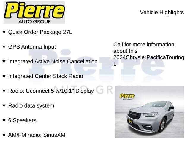 Recent Arrival! ***** Clean CARFAX *** CARFAX One-Owner ***** 2024 CHRYSLER PACIFICA TOURING L ***** * Adaptive Cruise Control with Stop and Go * BlindSpot and Rear CrossPath Detection * LaneDeparture Warning Plus * FullSpeed ForwardCollision Warning...