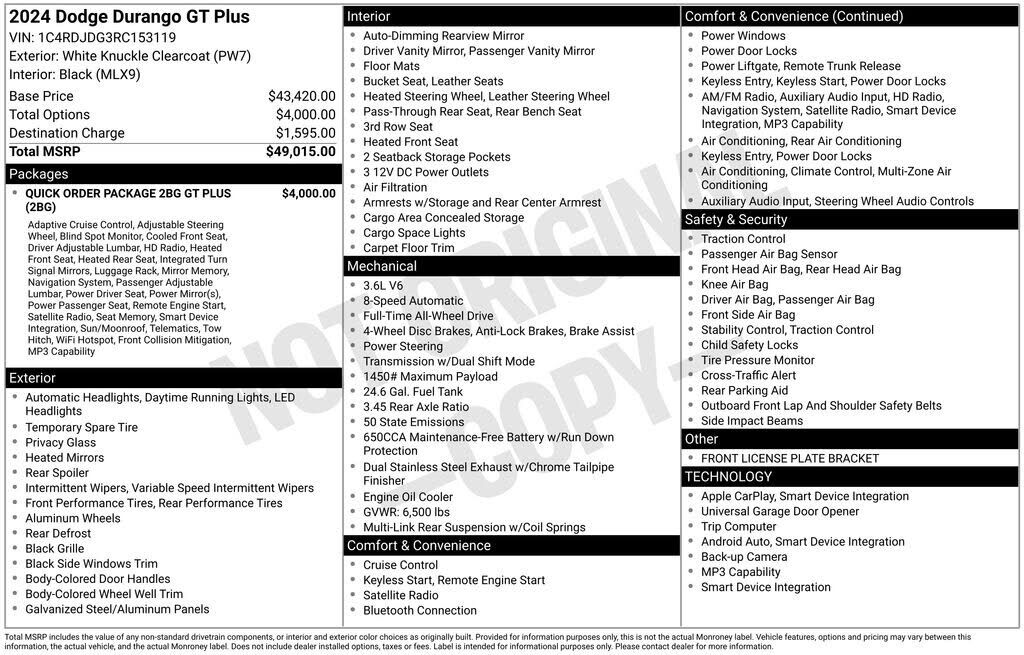 (Joseph Chevrolet) is proud to present you with another True Market Priced Pre-Owned Vehicle. This 2024 Dodge Durango GT Plus is loaded with the following Factory Options:Quick Order Package 2BG GT Plus (1-Year Trial (Registration Required), 10.1" To...