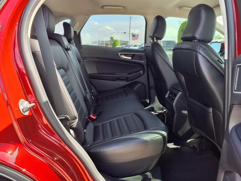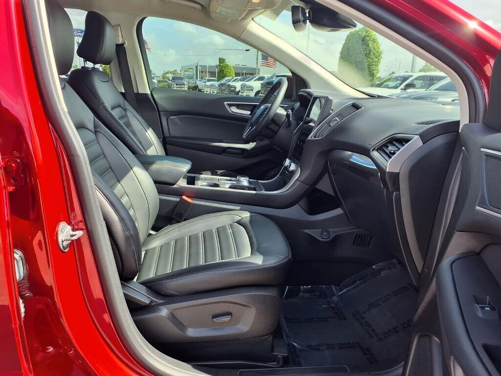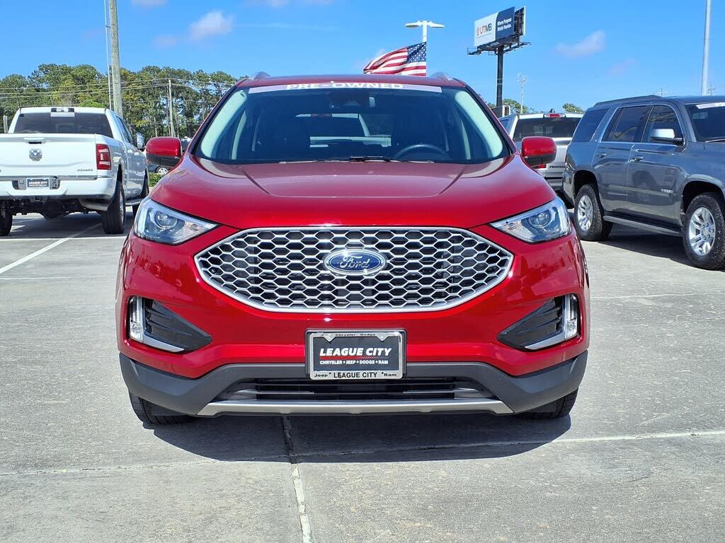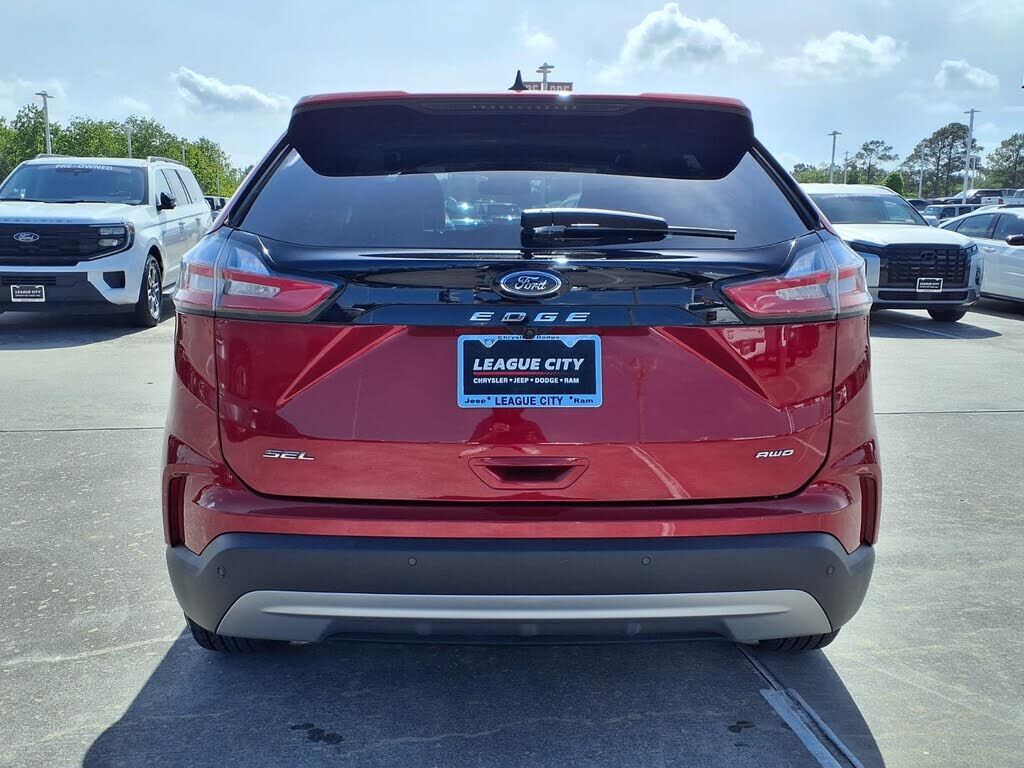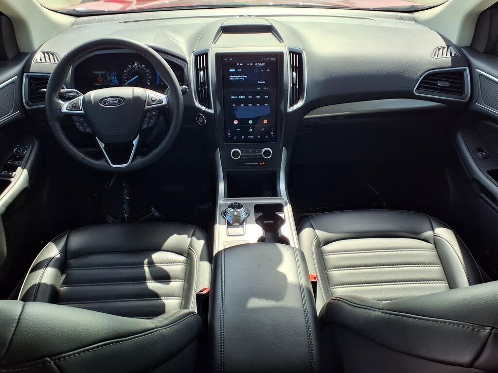 This vehicle is a 2024 Ford Edge SEL Crossover all wheel drive, with a low mileage of 15,555 miles. It has a 2.0 liter 4 cylinder engine, turbocharged, and a rapid red metallic tinted clearcoat exterior. The fuel economy in city is 21 mpg and fuel ec...