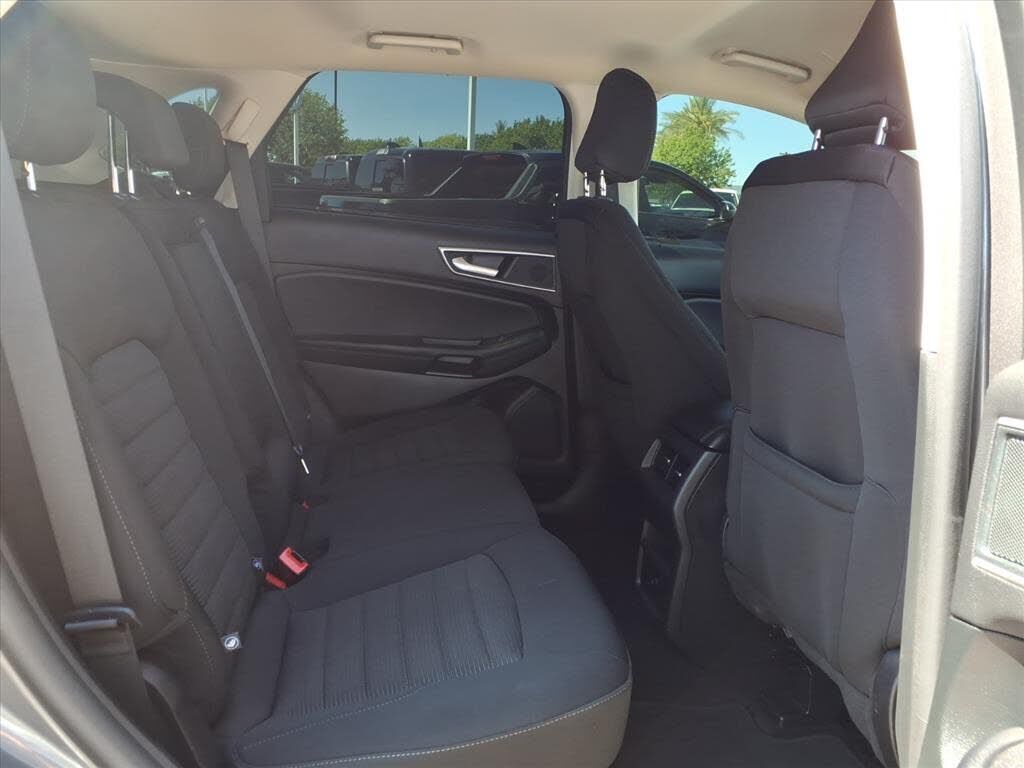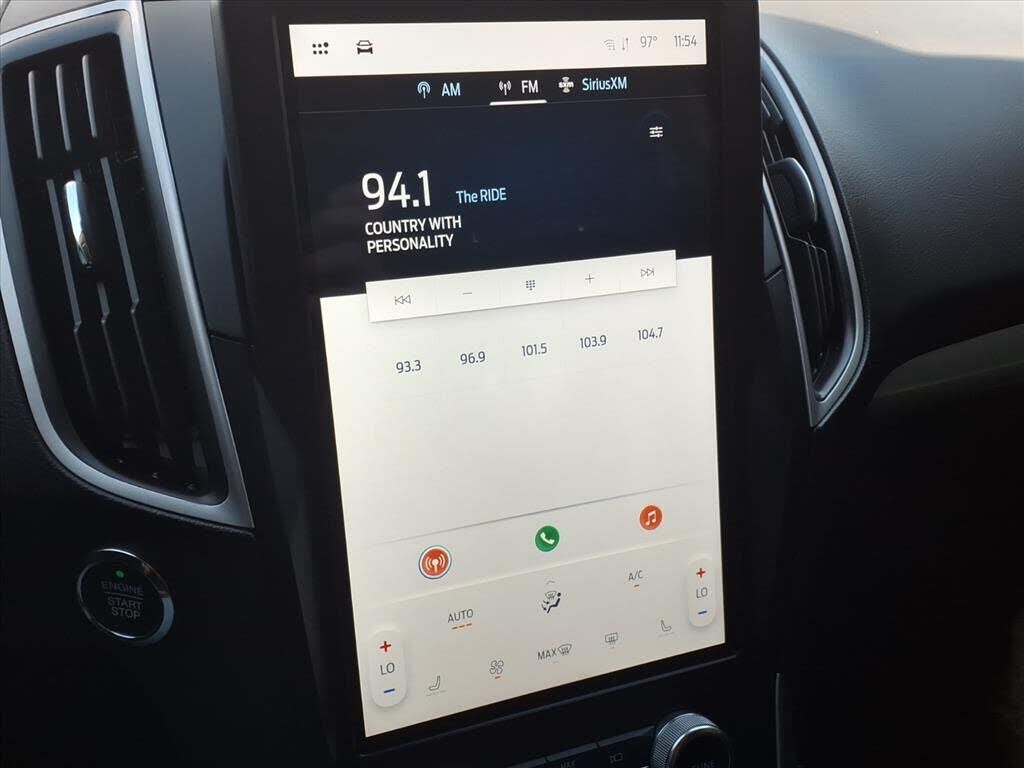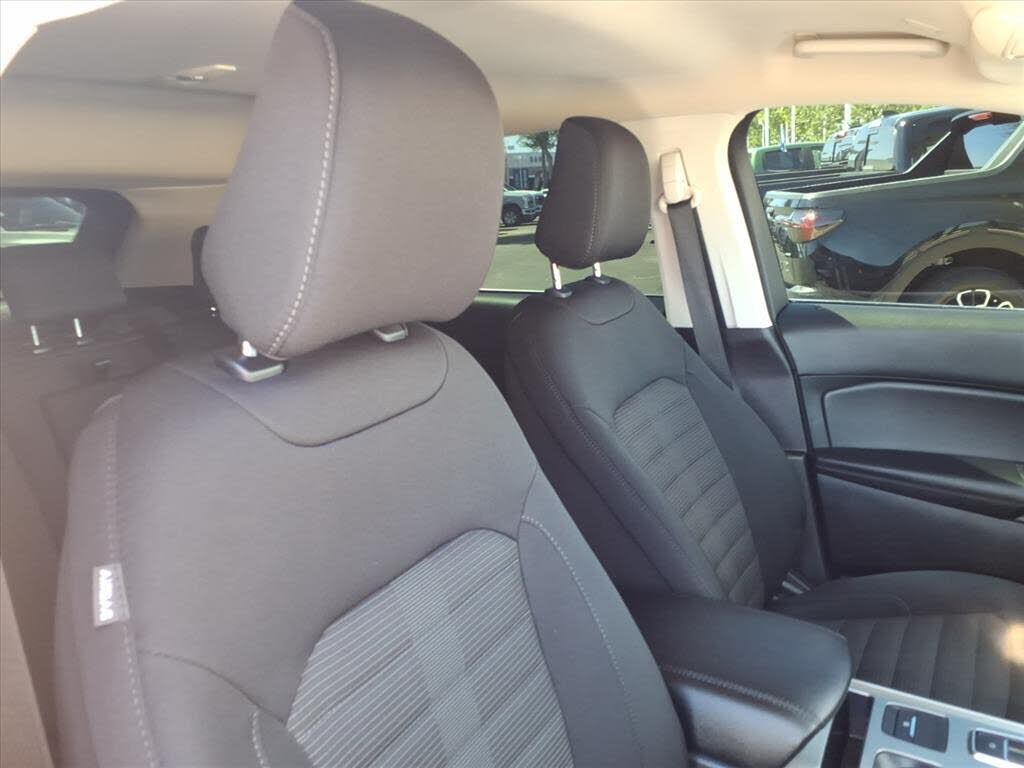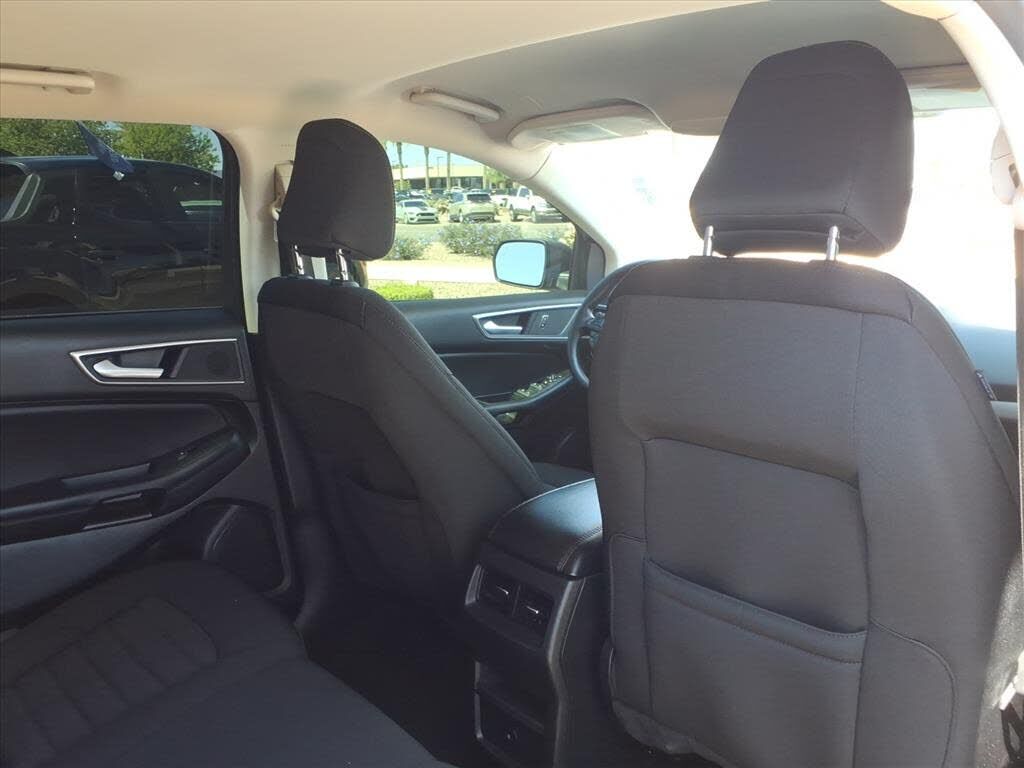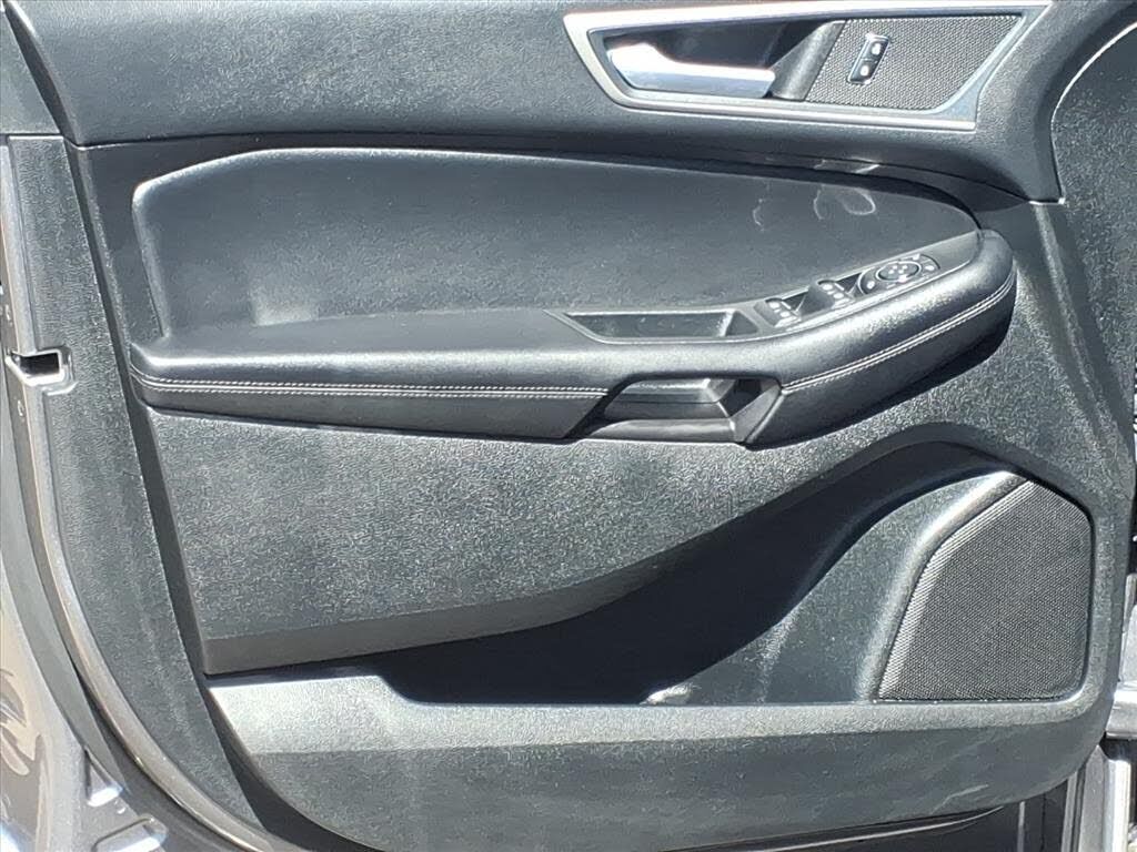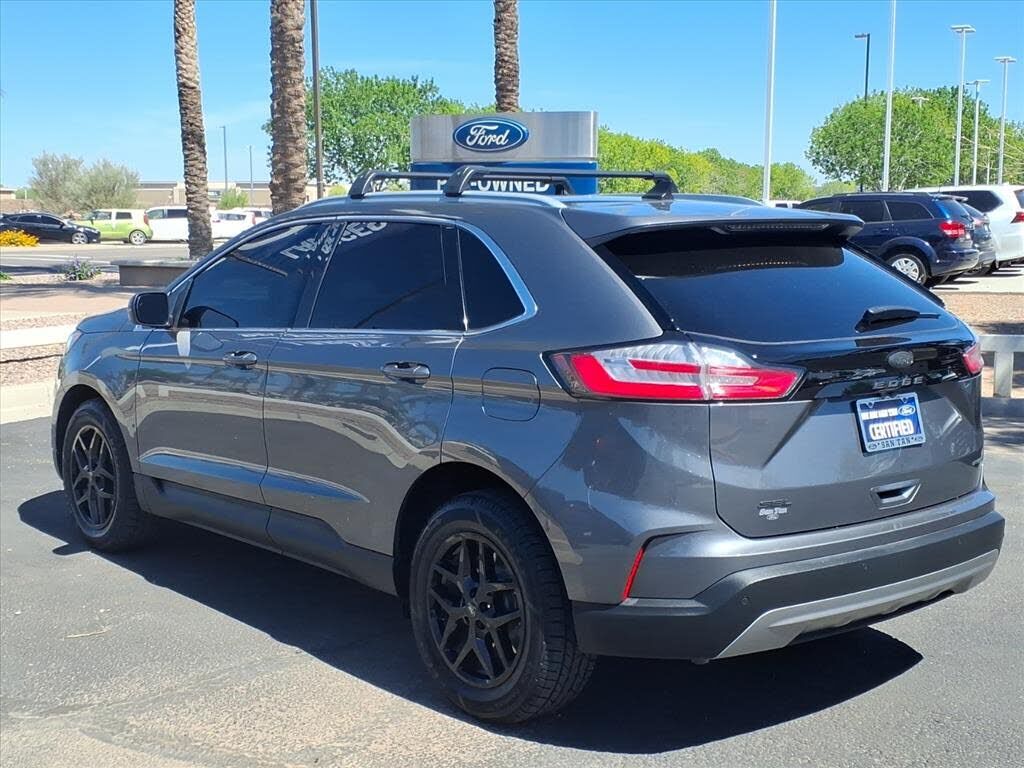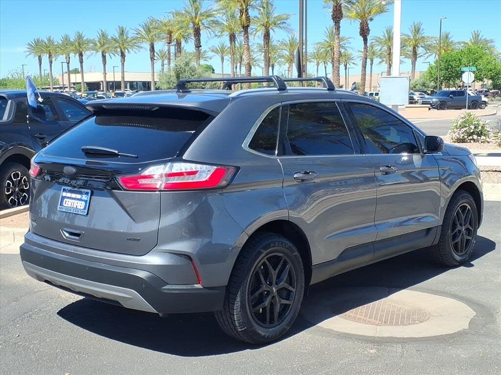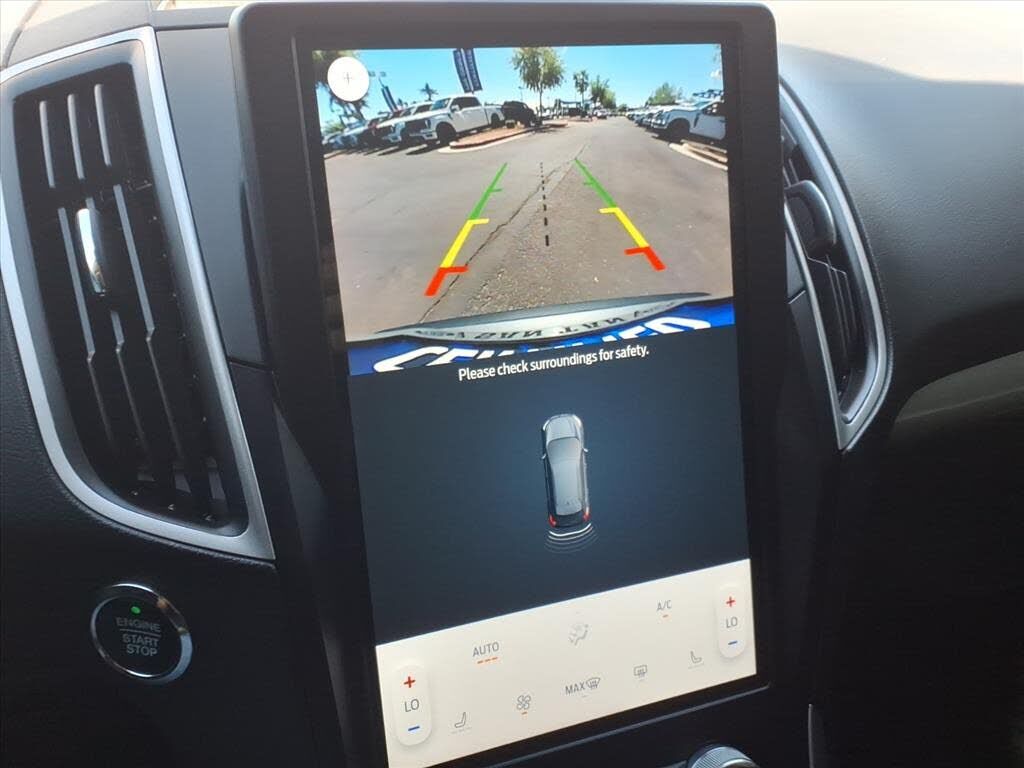 This vehicle is a 2024 Ford Edge SEL Crossover all wheel drive, certified pre-owned with 45,994 miles. It has a 2.0 liter 4 cylinder engine with turbocharging, and an ebony exterior with a carbonized gray metallic interior. It has a crash test rating...