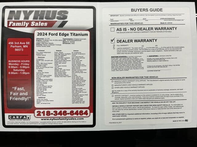 AWD. Competitive and flexible used vehicle financing is available for this vehicle. Visit NyhusFamilySales.com for Financing Options. 2024 Ford Edge Titanium Blue Metallic EcoBoost 2.0L I4 GTDi DOHC Turbocharged VCT **¡Hablamos espanol!**, **1,000...