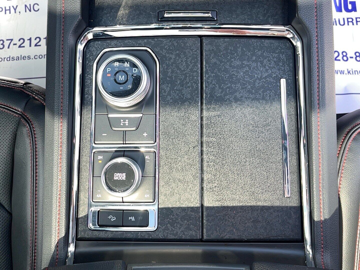 Simulated wood/metal-look center console trim