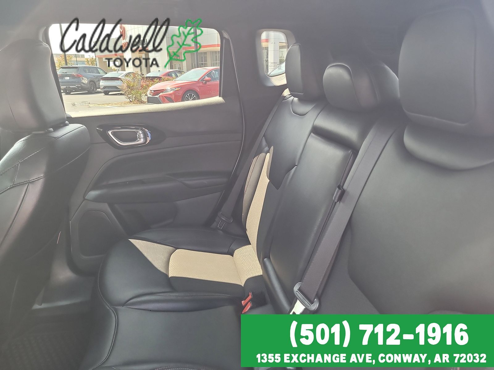 Cloth and leather rear seat upholstery