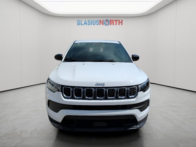 2024 Jeep Compass 4D Sport Utility Bright White Clearcoat Sport 17" x 7" Aluminum Wheels, 3.73 Final Drive Ratio, 4-Wheel Disc Brakes, 6 Speakers, ABS brakes, Air Conditioning, AM/FM radio: SiriusXM, Brake assist, Bumpers: body-color, Cloth Low-Back...