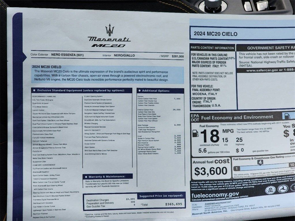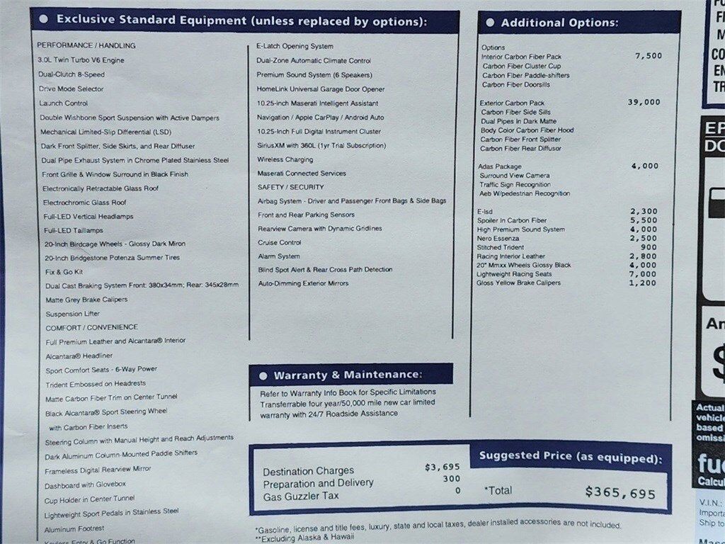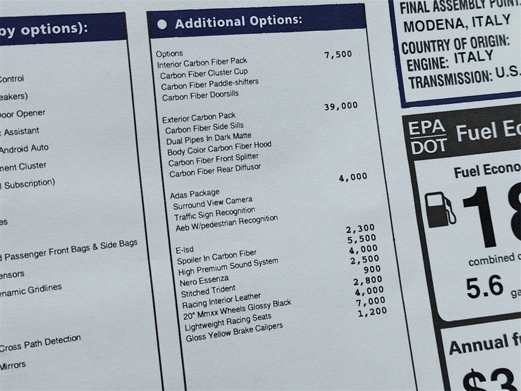 Interior Trim -inc: Alcantara Simulated Suede Instrument Panel Insert Carbon Fiber Console Insert Aluminum/Metal-Look Interior Accents and Alcantara Simulated Suede/Leather Upholstered Dashboard