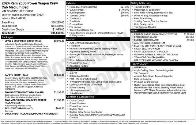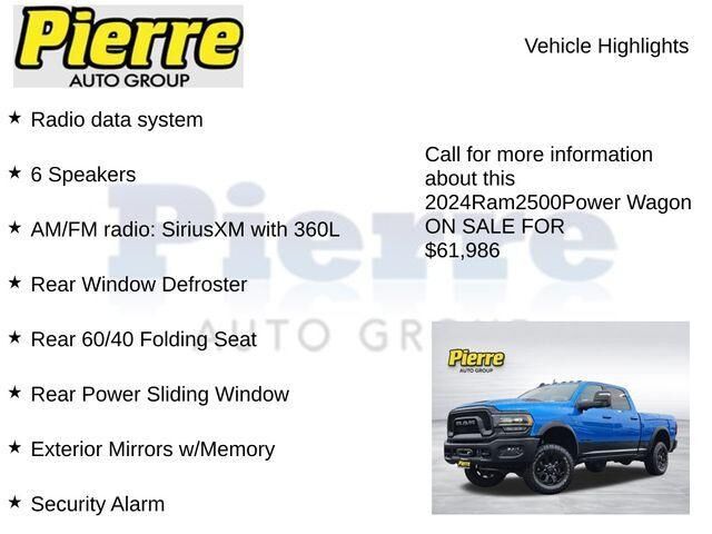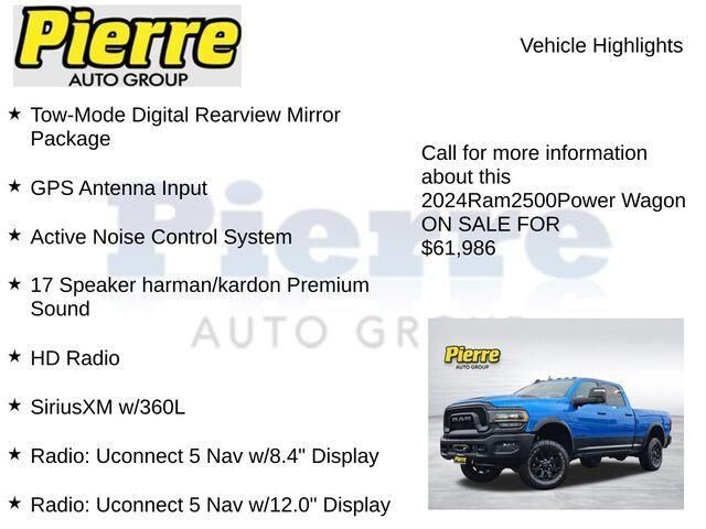 Recent Arrival! ***** Clean CARFAX ***** 2024 RAM 2500 POWER WAGON 4WD ***** 4X4 6.4' Bed Length Accident Avoidance Systems Active Noise Cancellation Active Parking System Adjustable Lumbar Support Adjustable Pedals Android Auto Anti-Theft System App...