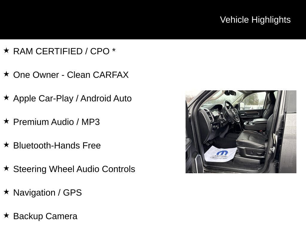 Granite Crystal Metallic Clearcoat 2024 Ram 2500 Laramie Cummins 6.7L I6 Turbodiesel 6-Speed Automatic 4WD RAM CERTIFIED / CPO *, One Owner - Clean CARFAX, Apple Car-Play / Android Auto, Premium Audio / MP3, Bluetooth-Hands Free, Steering Wheel Audi...