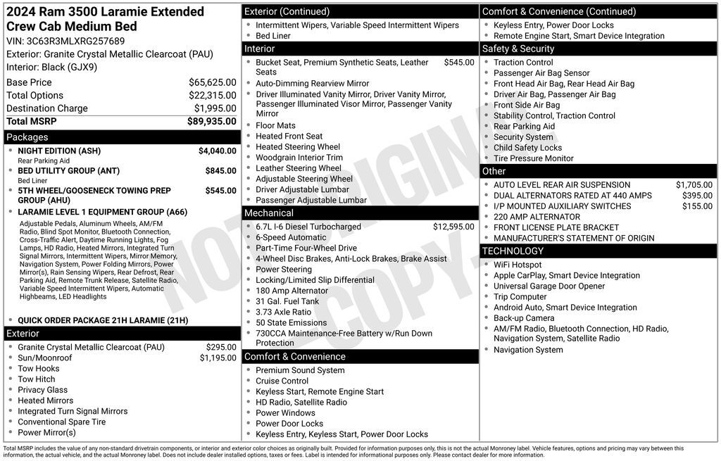 FRESH TRADE !!!! This 2024 Ram 3500 Laramie is a true workhorse, packed with features that will make your toughest jobs a breeze. Equipped with a powerful 6.7L I6 Cummins Turbo Diesel engine, this truck delivers exceptional performance and towing ca...