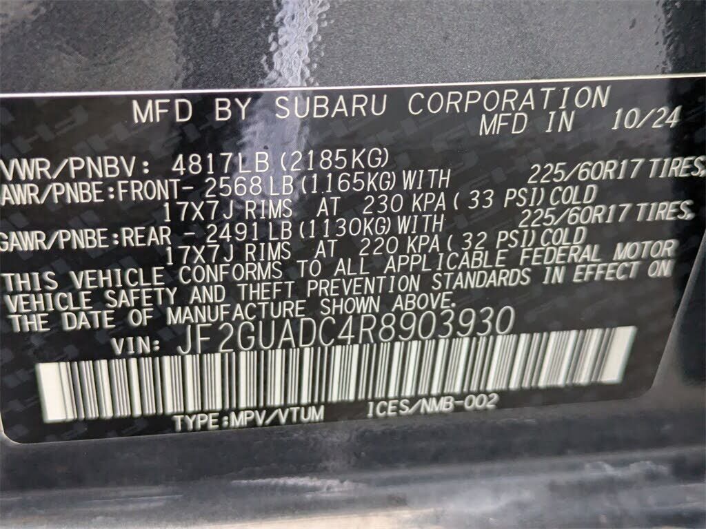 Radio: Subaru STARLINK 11.6" Multimedia Plus Sys -inc: AM/FM stereo HD Radio multi-touch gesture high resolution display screen voice activated controls Bluetooth® audio streaming and hands-free phone connectivity Bluetooth® hands-free SMS text messaging connectivity iPod control capability SiriusXM All Access Radio (4 months free trial included/subscription required after) SiriusXM Travel Link (4 months free trial included/subscription required after) smartphone integration: Android Auto and Apple CarPlay w/full screen view and wireless connection USB and Over The Air (OTA) audio system update steering wheel audio system and Bluetooth® control switches 6 speakers (2 dash panel tweeter 2 front door and 2 rear door) illuminated 3.5mm auxiliary input jack illuminated front USB A and C input/charge ports and illuminated rear USB A and C charge ports