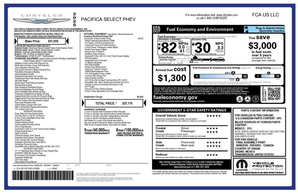 Quick Order Package 2EP Select,Uconnect Theater Family Group,Black Seats,Illuminated Cupholders,2nd and 3rd Row Window Shades,115V Auxiliary Power Outlet,GPS Navigation,GPS Antenna Input,Integrated Active Noise Cancellation,Power 2-Way Passenger Lumb...
