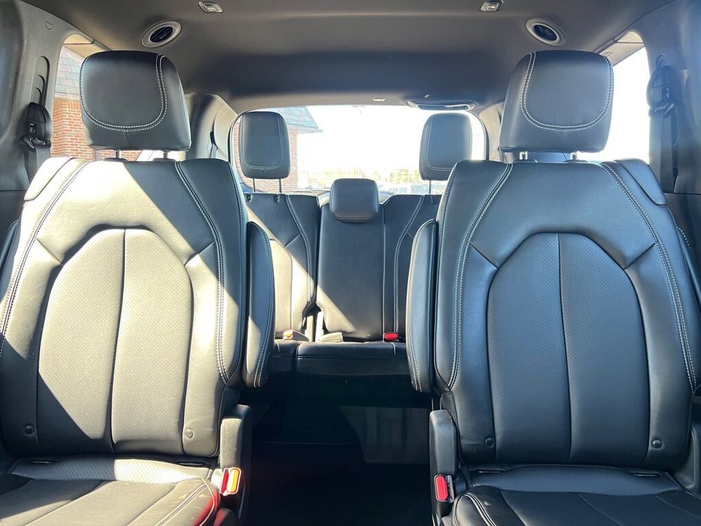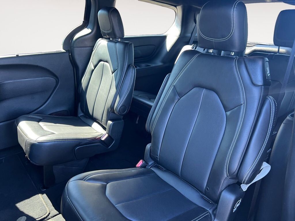 The 2025 Chrysler Pacifica Select is a stylish and family-focused minivan designed to make every drive more comfortable convenient and connected. Finished in Diamond Black Crystal Pearl-Coat with a sleek black interior this Pacifica Select offers a modern and refined appearance inside and out. Powered by a dependable 3.6L V6 engine paired with a smooth 9-speed automatic transmission it delivers confident performance whether you're commuting road-tripping or handling everyday errands. Inside the cabin you’ll find versatile seating with Chrysler’s renowned second- and third-row Stow ‘n Go® system allowing you to easily fold the rear seats into the floor for exceptional cargo flexibility. Heated front seats a heated steering wheel power-adjustable driver’s seat with memory settings and tri-zone automatic climate control help keep everyone comfortable no matter the season. The spacious layout and thoughtful storage solutions make it ideal for growing families or anyone needing extra room. Technology is front and center with the advanced Uconnect® 5 infotainment system featuring a large 10.1-inch touchscreen display Apple CarPlay® Android Auto™ Bluetooth® connectivity available Wi-Fi hotspot capability and hands-free phone and audio controls. Power sliding side doors and a power liftgate make loading passengers and cargo easier than ever especially when your hands are full. Safety is a standout with features such as Adaptive Cruise Control with Stop and Go Blind-Spot Monitoring Rear Cross-Path Detection Lane Departure Warning Full-Speed Forward Collision Warning Plus Pedestrian Emergency Braking ParkView® Rear Backup Camera and Rear Park Assist. With its premium comfort innovative seating advanced safety systems and versatile utility this Pacifica Select is an excellent choice for drivers who need space without sacrificing style.