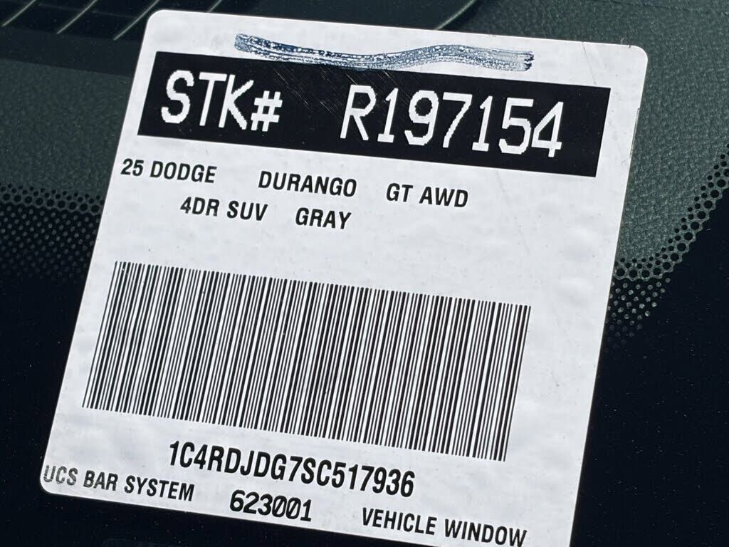 Destroyer Gray Clearcoat 2025 Dodge Durango GT AWD 8-Speed Automatic 3.6L V6 24V VVT AWD, ABS brakes, Alloy wheels, Compass, Electronic Stability Control, Front dual zone A/C, Heated door mirrors, Heated front seats, Illuminated entry, Low tire press...