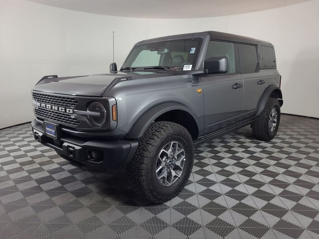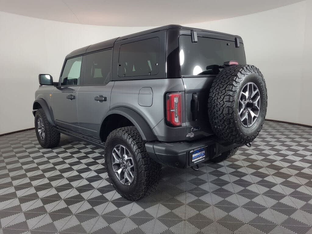 Gray Metallic 2025 Ford Bronco Badlands 4WD 10-Speed Automatic 2.7L EcoBoost V6 Please call our internet department for more details. 303-800-3235.Equipment Group 332A Mid Package,4.7 Axle Ratio,Wheels: 17" Carbonized Gray-Painted Aluminum,Marine Gr...