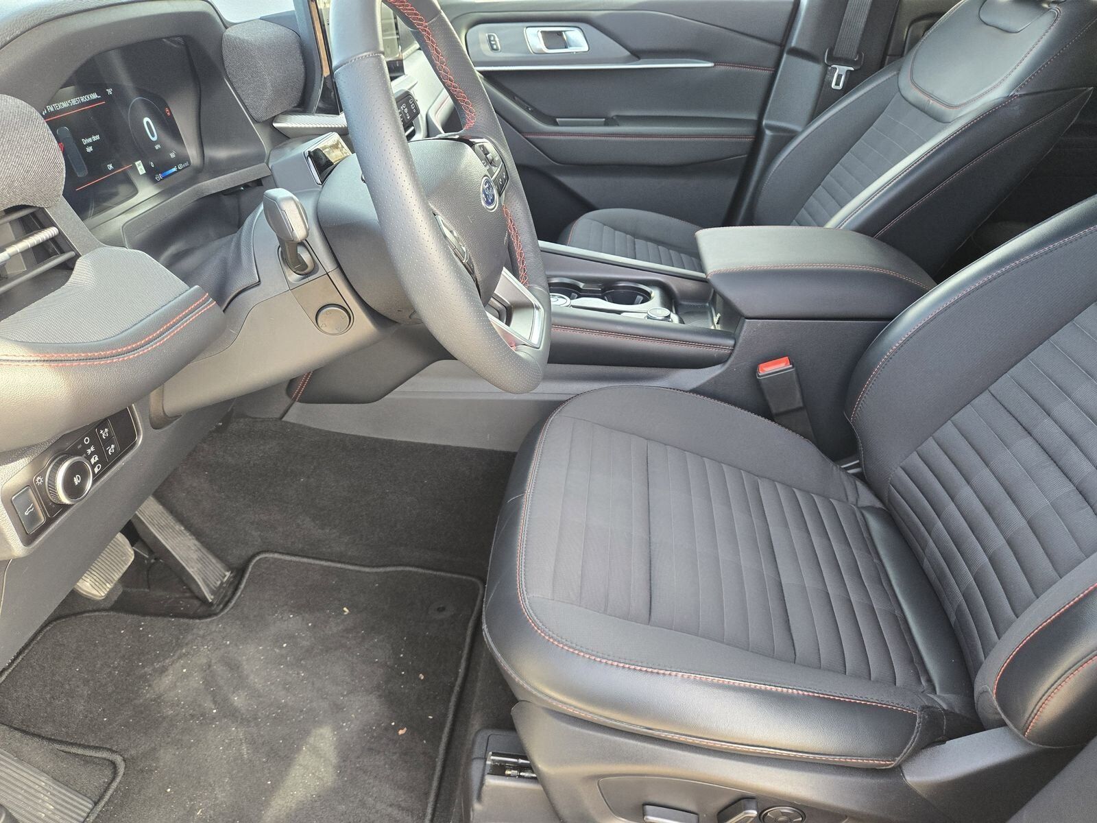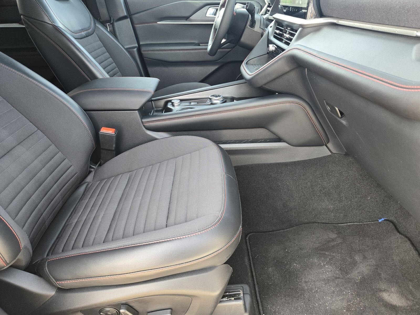 Heated Unique Cloth Captain's Chairs -inc: red stitching 10-way power driver (power function for tilt lumbar and recline) and 8-way power front passenger (power function for lumbar and recline)